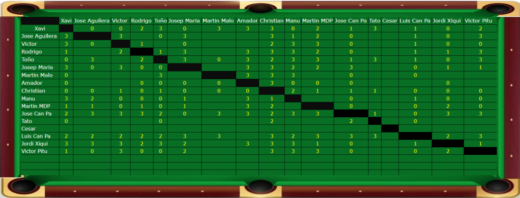 Los enfrentamientos se disputarán entre el 8 de Mayo y el 13 de Junio pudiéndose jugar cuando acuerden los participantes, al terminar el enfrentamiento se comunicará el resultado a la dirección para anotarlo en la página web.